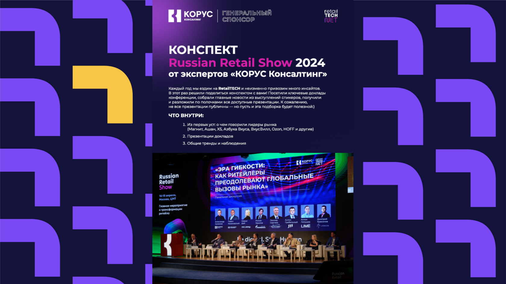 | О чем говорили на Russian Retail Show '24? Конспект от экспертов КОРУС Консалтинг | | | | Здравствуйте! Делимся конспектом мероприятия Russian Retail Show '24.