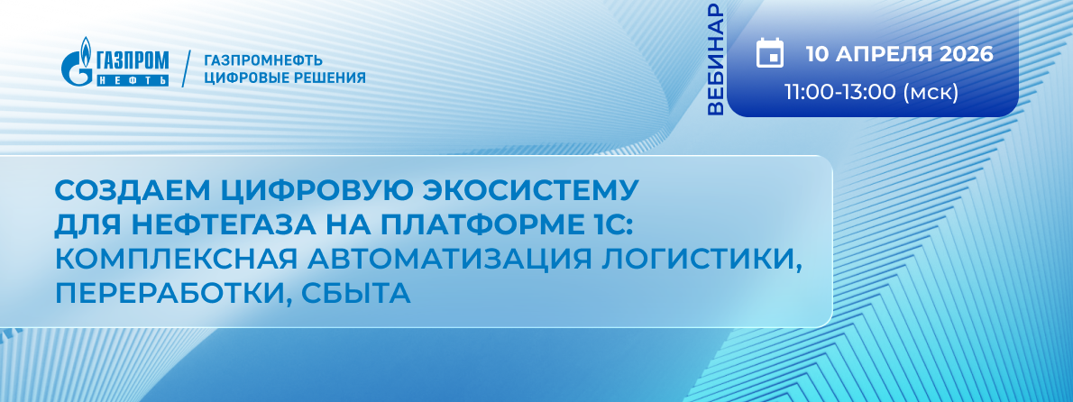 | Создаем цифровую экосистему для нефтегаза на платформе 1С: комплексная автоматизация логистики, переработки, сбыта | | | | Вебинар «Газпромнефть-ЦР» 10 апреля в 11:00
