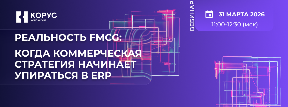 | Как понять, работает ли ваша ERP на усиление рыночной позиции? | | | | 31 марта в 11:00 (МСК) приглашаем на вебинар «Реальность FMCG: когда коммерческая стратегия начинает упираться в ERP» (1,5 часа).
