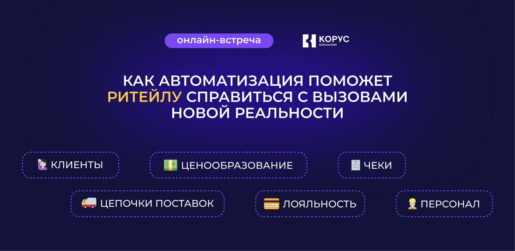 | Обсудим проблемы ритейла? Ждем вас онлайн, 7 июля в 11:00 мск | | | | | На связи Константин Смирнов, коммерческий директор группы департаментов ERP КОРУС Консалтинг. Более 15 лет занимаюсь цифровой трансформацией и реализацией комплексных проектов в крупном бизнесе. | | | | | Вопросы автоматизации лояльности, гибкого ценообразования, оптимизации расходов всегда были на повестке дня у ритейлеров. Но если раньше многие проблемы можно было нивелировать за счет сверхмаржи, то теперь на фоне экономической ситуации и снижения покупательной способности торговые сети вынуждены искать другой путь. | | | | Приглашаю вас на онлайн-встречу, где мы с руководителем направления «Ритейл и дистрибуция» группы департаментов ERP, Василием Малыхиным, в формате живого диалога обсудим, что происходит с рынком ритейла, с какими новыми трудностями он столкнулся, и как справиться с вызовами новой реальности | | | | Затронем самые актуальные вопросы: | | | - Как удерживать клиентов? Нужны ли сейчас программы лояльности, и как их реализовать в условиях импортозамещения?