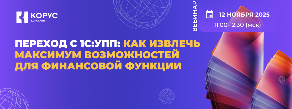 | [Вебинар] Как современные решения 1С помогают выстроить прозрачные и устойчивые бизнес-процессы? | | | | Вебинар «КОРУС Консалтинг» 12 ноября 2025 в 11:00 (мск) Замена 1С:УПП — зона общей ответственности ИТ и финансовой службы. На вебинаре разберем, как выбрать систему, которая обеспечит устойчивость бизнес-процессов и прозрачность учета. | | | | В 2027 году «1С» завершит поддержку УПП, и без обновлений вести регламентированный учет в ней станет затруднительно.