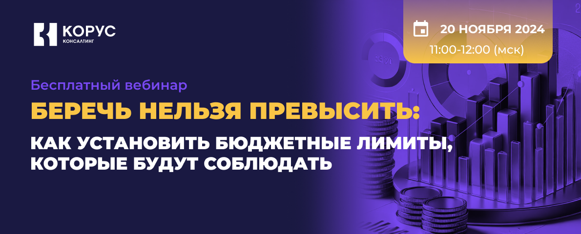 Вебинар «КОРУС Консалтинг»20 ноября 11:00-12:00 (мск)Беречь нельзя превысить: как установить бюджетные лимиты, которые будут соблюдатьУправлять всеми затратами многочисленных подразделений сложно, поэтому крупному бизнесу особенно важно контролировать бюджетные лимиты. На примере кейса «Рив Гош» и наших проектов в других отраслях расскажем: - Как построить методологическую базу для корректного расчета будущих издержек
